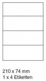 Etiketten auf DIN A4 Bögen Größe 210 x 74 mm - 500er Pack